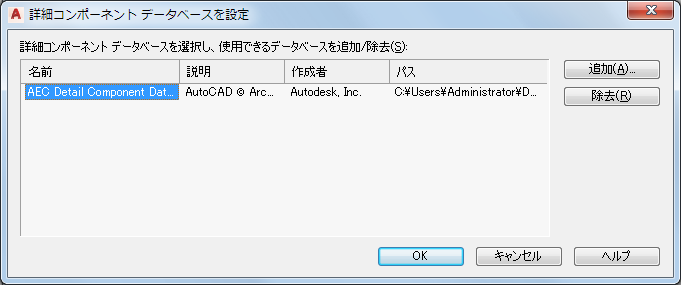 注: ここでは、正しい構造を持つ詳細コンポーネント データベースだけが追加できます。異なる構造のデータベースを追加しようとすると、エラー メッセージが表示されます。