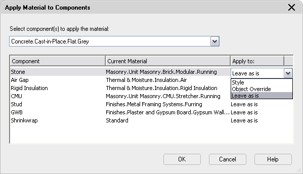 [マテリアルをコンポーネントに適用]ワークシートが表示されます。