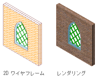 2D ワイヤフレーム ビューとレンダリング ビューでの窓