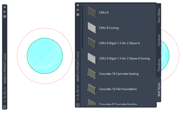 使用しないときにツール パレット セットを非表示にするには、次の手順を実行します。ツール パレット セットの外側にカーソルを移動すると、ツール パレット セットは非表示になります。ただし、タイトル バーだけは、表示されたままになります。タイトル バー上にカーソルを置くと、ツール パレット セットが再表示されます。