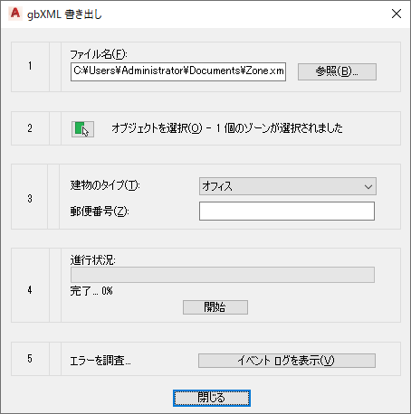 プロパティ セットの値を使用してスペースを設定し、ゾーンにスペースをアタッチした後は、エンジニアリングおよび建物の情報を gbXML 形式に書き出すことができます。