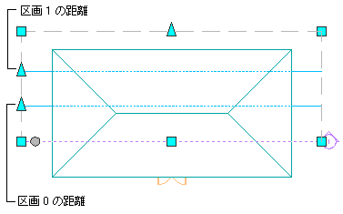 この手順を使用して、断面線から測定した区画の距離を変更します。 目的の距離まで拘束グリップをドラッグするか、特定の計測値を入力することができます。