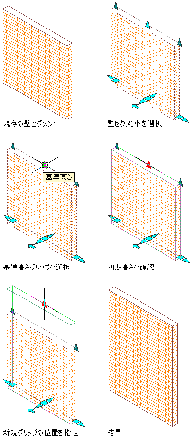 グリップの選択後、正確な値を入力して壁の基準高さを増減することもできます。