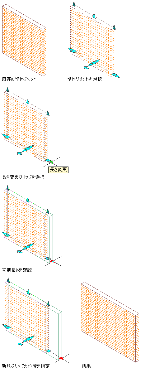 グリップの選択後、正確な値を入力して壁の長さを増減することもできます。