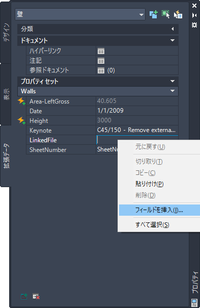| 日付/時刻、ドキュメント、ハイパーリンク、オブジェクト、システム変数、Diesel 式、または印刷フィールドを挿入する | AutoCAD ヘルプの「文字内でフィールドを使用する」を参照してください。 |