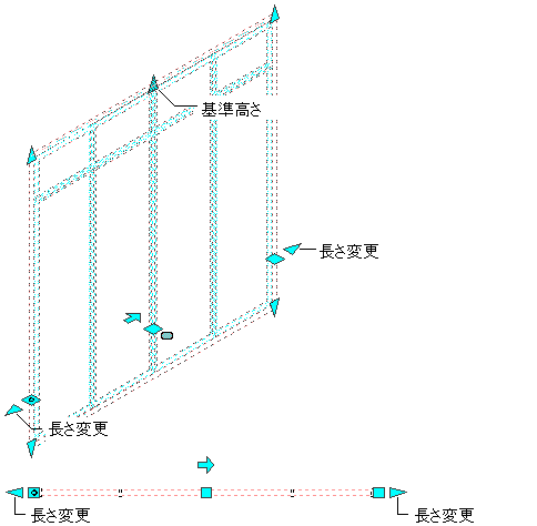 カーテン ウォールの長さグリップと基準高さグリップを表示