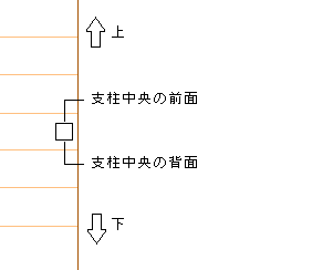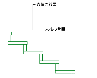 次の図に示すように、立面ビューで階段の上方向と下方向を基準に支柱の方向を指定します。