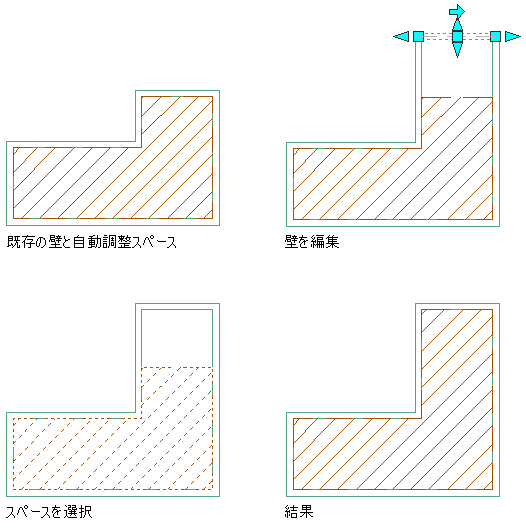 選択したスペースだけを更新することも、図面内のすべての自動調整スペースを更新することもできます。