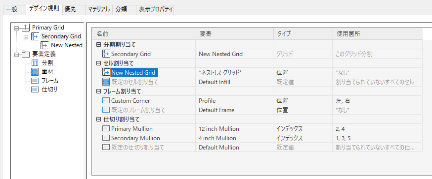 ネストしたグリッド、つまりグリッド内のグリッドを作成するには、次の手順を実行します。それぞれのネストしたグリッドには、独自の分割規則、セル割り当て、フレーム、マリオンがあります。既定では、ネストしたグリッドに対してフレームは選択解除になっています。