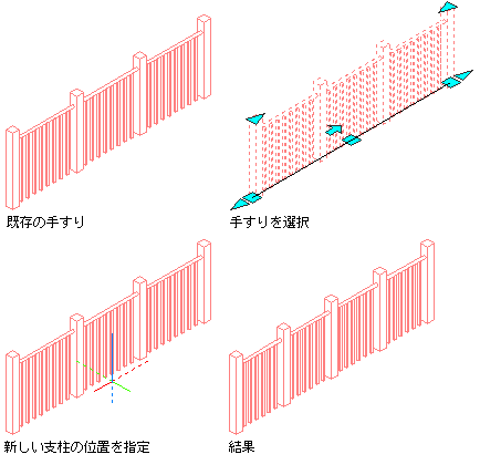 手すりに支柱を追加するには