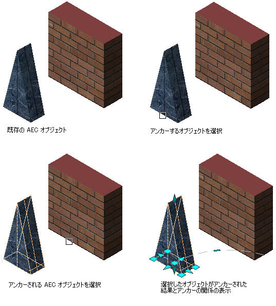 または、コマンド ラインに、OBJECTANCHORATTACH と入力します。