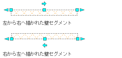 壁の方向は、壁に修正を加えるとき重要になることがあります。 AutoCAD Architecture 2027 toolset に付属の壁スタイルのサンプルは、時計回りに周囲の壁を配置することを想定して作成されました。壁の配置が終了したら、壁を選択して壁の方向を決めることができます。壁の方向は、壁の方向グリップによって示されます。 壁の方向を反転することもできます。