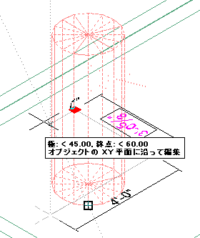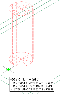 任意の編集モードで 2 番目の方向に任意の値を入力する場合には(XY 平面に沿って編集中に Y 方向に値を入力する場合など)、[Tab]キーを押すと 2 つの方向の間で順番に選択できます。