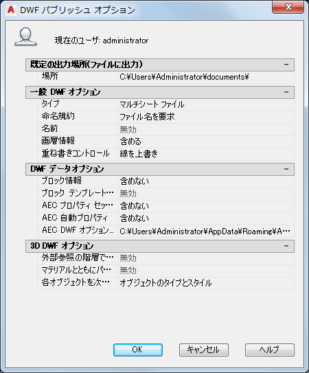 図面を保存したときや閉じたときに自動的に PDF 形式(または DWF、DWFx)にパブリッシュされるように指定できます。自動パブリッシュ設定では、モデルやレイアウトを含めるかどうかや、複数シート ファイルまたは単一シート ファイルのいずれをパブリッシュするかも指定できます