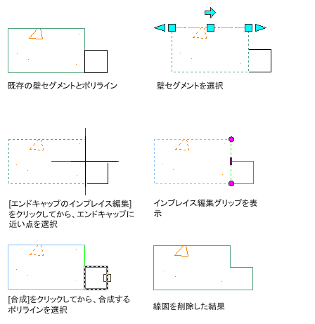 コンポーネントに輪郭を合成することで、壁エンドキャップを修正するには、次の手順を使用します。輪郭は、特定のコンポーネントと重なるか共存する、ポリラインで囲まれた任意のエリアです。