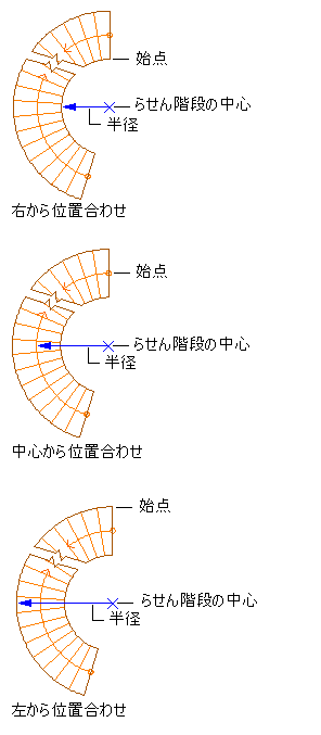 半径は、らせん階段の中心点から、選択した位置合わせ点まで計測されます。