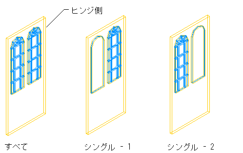 | すべてのガラス コンポーネントに組子をアタッチするには | [ガラス コンポーネント]で[すべて]を選択します。 |