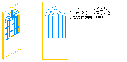 | それぞれのガラス コンポーネントに組子を適用するには | [ガラス コンポーネント]で[単一]を選択し、インデックス番号を指定します。区切りには、左下コーナーから反時計回りにインデックスが付いています。 |
