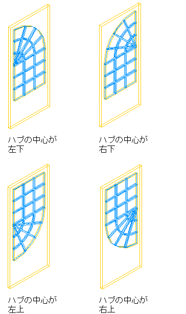 | 半円形状の下部にハブを配置するには | [ハブ]で、[中心下]を選択します。 |