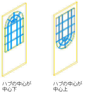 | 半円形状の上部にハブを配置するには | [ハブ]で、[中心上]を選択します。 |
