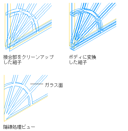 | すべての組子を接合部がクリーンアップされた 1 つのボディに変換するには | [組子]で[ボディに変換]を選択します。 |