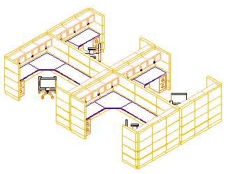 オフィス スペース構成内で 4 回参照されている小部屋要素の 3D ビュー