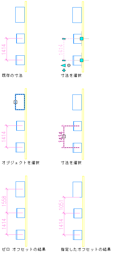 スタイルが定義されていない寸法点を AEC 寸法に追加、オフセットする