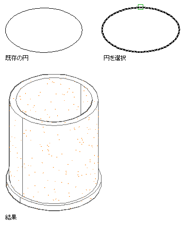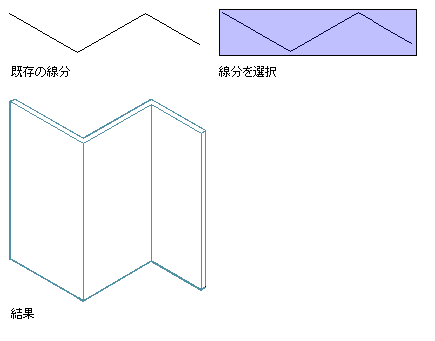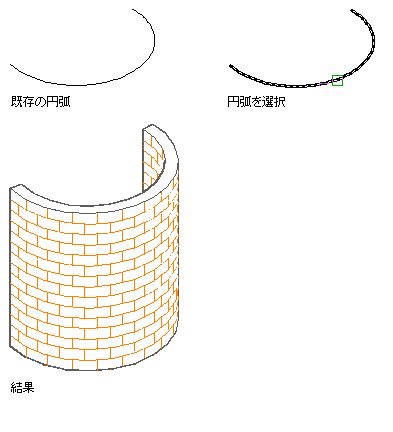 | 図面内の既存の線分または円弧から壁の基準線を指定するには |