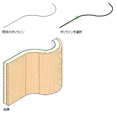 たとえば、建物の外壁や部屋を作成するために、まず線分、円弧、円、ポリラインを使用して壁の線図すなわちスケッチを作成し、次にこれらのオブジェクトを壁に変換することができます。壁を作成した後で壁のプロパティを編集することができます。