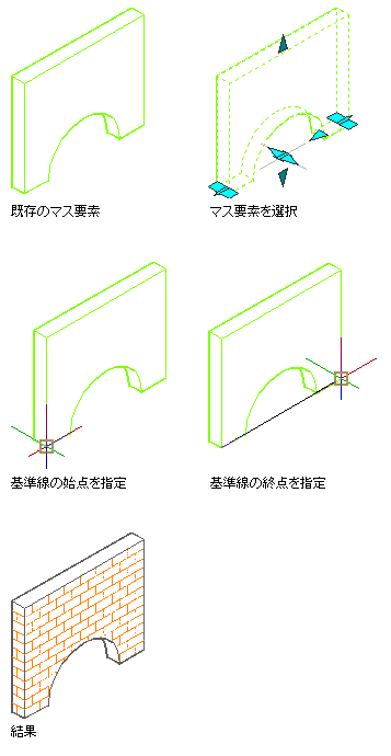 マス要素や AutoCAD ACIS ソリッドといった 3D オブジェクトを 1 つのコンポーネントからなる壁に変換します。
