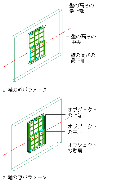 | 壁の高さの中央を参照点として使用するには | [壁高さ(Z)に沿った位置]の[基点]で[壁の高さの中央]を選択します。 |