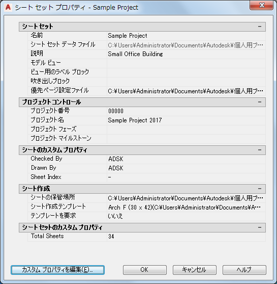 これらのパラメータはシート セットのプロパティで設定されますが、個別のサブセットについてこれらの設定を上書きできます。これは、プラン シートおよび詳細シートについて異なるシート テンプレートを使用したい場合などに便利です。
