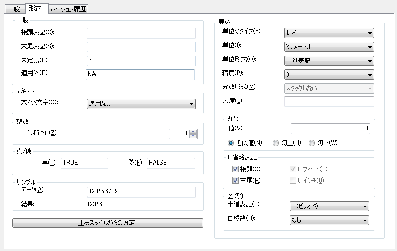 データ形式を集計データに適用すると、プロパティのデータ タイプに対応する特定の設定を使用して各プロパティの値が表示されます。たとえば、同じ集計データ形式で、寸法値が実数設定を使用し、注釈がテキストの設定を使用するように指定できます。