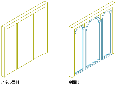 新しい要素定義を作成し、カーテン ウォール内にそれらの定義を割り当てることができます。たとえば、複数の面材定義を作成し、次に、グリッドの特定のセルに異なる面材を割り当てることができます。