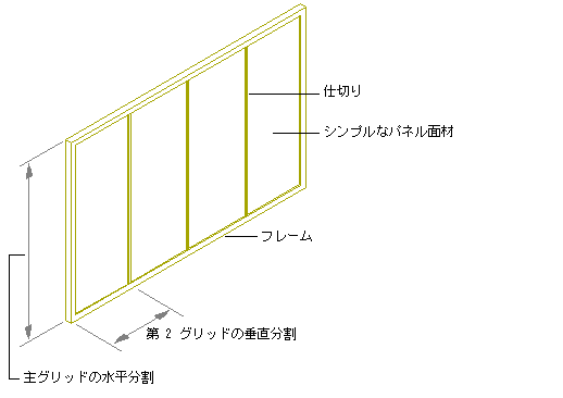 グリッドは、カーテン ウォール、カーテン ウォール ユニット、組合せ窓の基本です。すべてのグリッドには、次の 4 つの要素タイプがあります。
