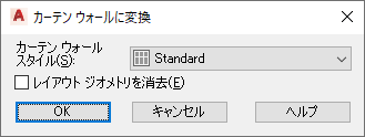 既存のマス要素またはマス要素グループの面や、メッシュ、ルールド サーフェス、ルールド ソリッドなどの AutoCAD 図形の面を基にしてカーテン ウォールを作成するには、次の操作を実行します。これは、建築モデル開発後に役立ちます。それぞれの面ごとに、独立したカーテン ウォールが作成されます。変換過程で、セル、フレーム、マリオンの外観や、カーテン ウォール グリッドのセルの数とサイズを決定するカーテン ウォール スタイルを選択するよう求めるプロンプトが表示されます。