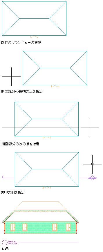 作成した断面線分から、断面オブジェクトまたはライブ断面ビューを作成できます。