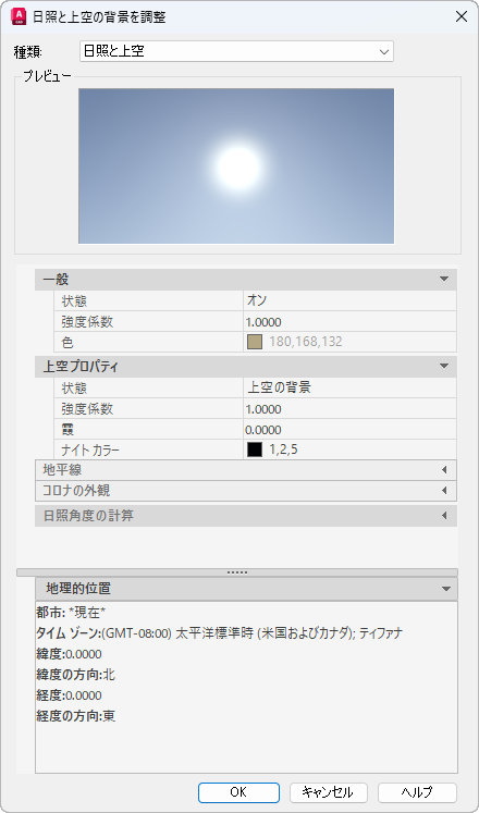 SUNPROPERTIES[日照プロパティ] (コマンド) 検索: 上空プロパティ
