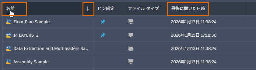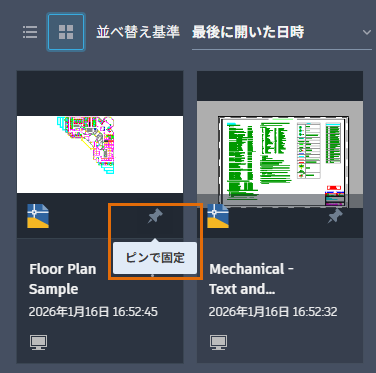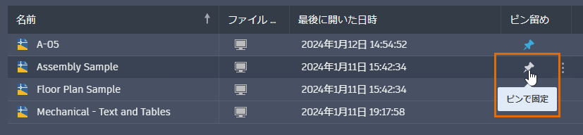 ファイルを固定すると、固定を解除するまで、一覧の一番上に表示されます。