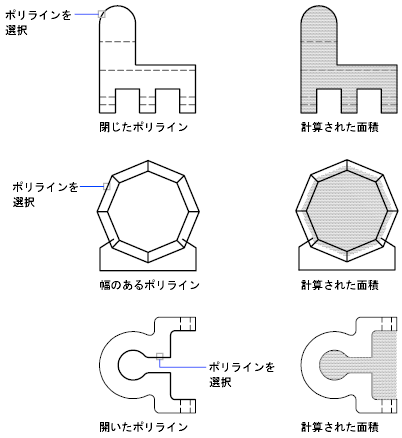 指定した点で囲まれた領域の面積を計測することができます。これらの点は、現在の UCS の XY 平面に平行な平面上になければなりません。
