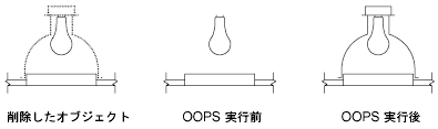 OOPS[オブジェクトを復活]コマンドを使用すると、直前の ERASE[削除]コマンドで削除したオブジェクトが復元されます。