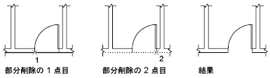 ブロック、寸法、マルチライン、リージョンを除いて、ほとんどのジオメトリ オブジェクトを部分削除できます。ブロックや寸法などのオブジェクトは、EXPLODE[分解]コマンドを使用して関連付けを解除したジオメトリを部分削除します。