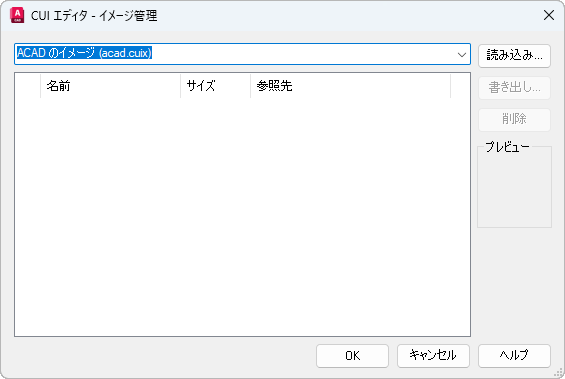 CUI[ユーザ インタフェースをカスタマイズ] (コマンド) 検索: [イメージ管理]
