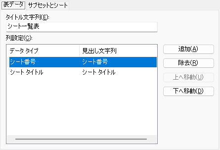 シート一覧表の列それぞれのタイトル文字を変更できます。
