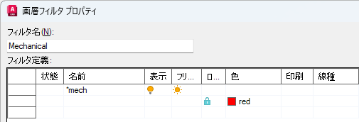LAYER[画層管理] (コマンド) 検索: [プロパティ フィルタを新規作成]