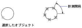 選択したオブジェクトに沿って指定した間隔で点オブジェクトが配置されます。オブジェクトを選択した点に最も近い位置の端点から配置が開始されます。