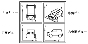 ビューポートを選択するときは、その枠を指定します。選択するビューポートはオンになっていてアクティブでなければなりません。ビューポートを選択すると、モデル空間に切り替えられ、選択したビューポートに目的のビューが呼び出されます。