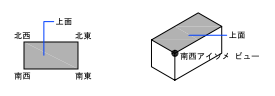 アイソメ ビューの効果を理解するために、箱の上部を見下ろしている状況を想像してみてください。箱の左下コーナーに視点を移動すると、それは、箱を南西アイソメ ビューで見ることになります。箱の右上コーナーに視点を移動すると、それは、箱を北東アイソメ ビューで見ることになります。