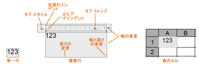 ルーラーの表示をコントロールします。(表のセルおよび 1 行文字の場合は使用できません)