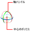 回転するオブジェクトとサブオブジェクトを選択すると、選択セットの中心に 3D ギズモが表示されます。ギズモの中心のボックス(つまり、基点グリップ)により移動の基点が設定され、選択したオブジェクトを回転している間、UCS の位置が一時的に変更されます。